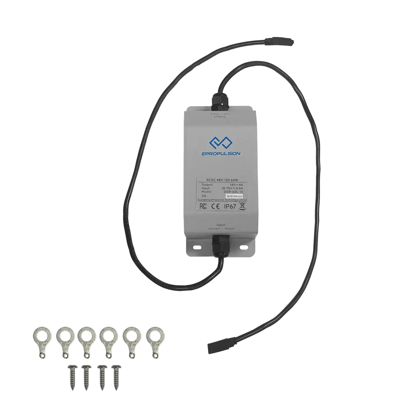 Used to convert E-Series battery from 48V to 12V for powering other 12V devices. Conveniently convert your E-Series battery from 48V to 12V, providing a continuous 60 watts of power output. This versatile converter is compatible with various E-Series batteries, including E60,E100 and E163, making it perfect for powering a variety of 12V devices.